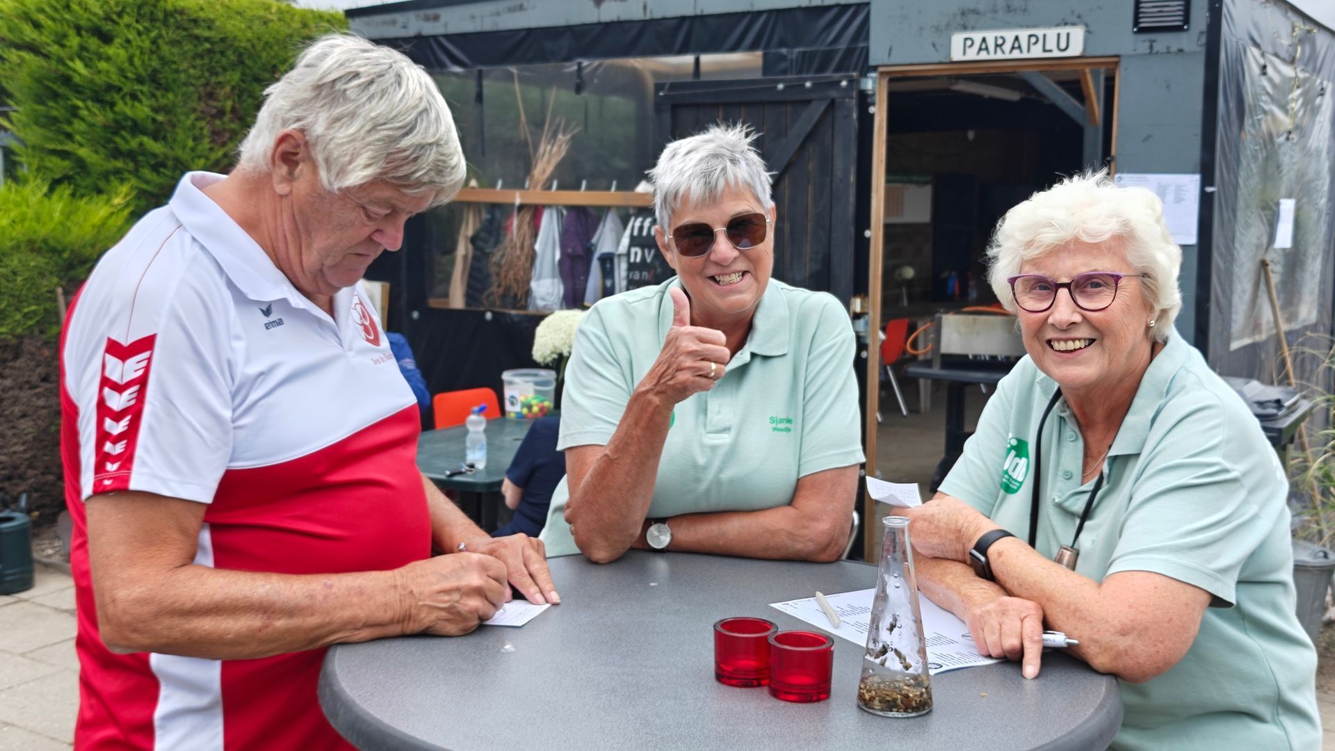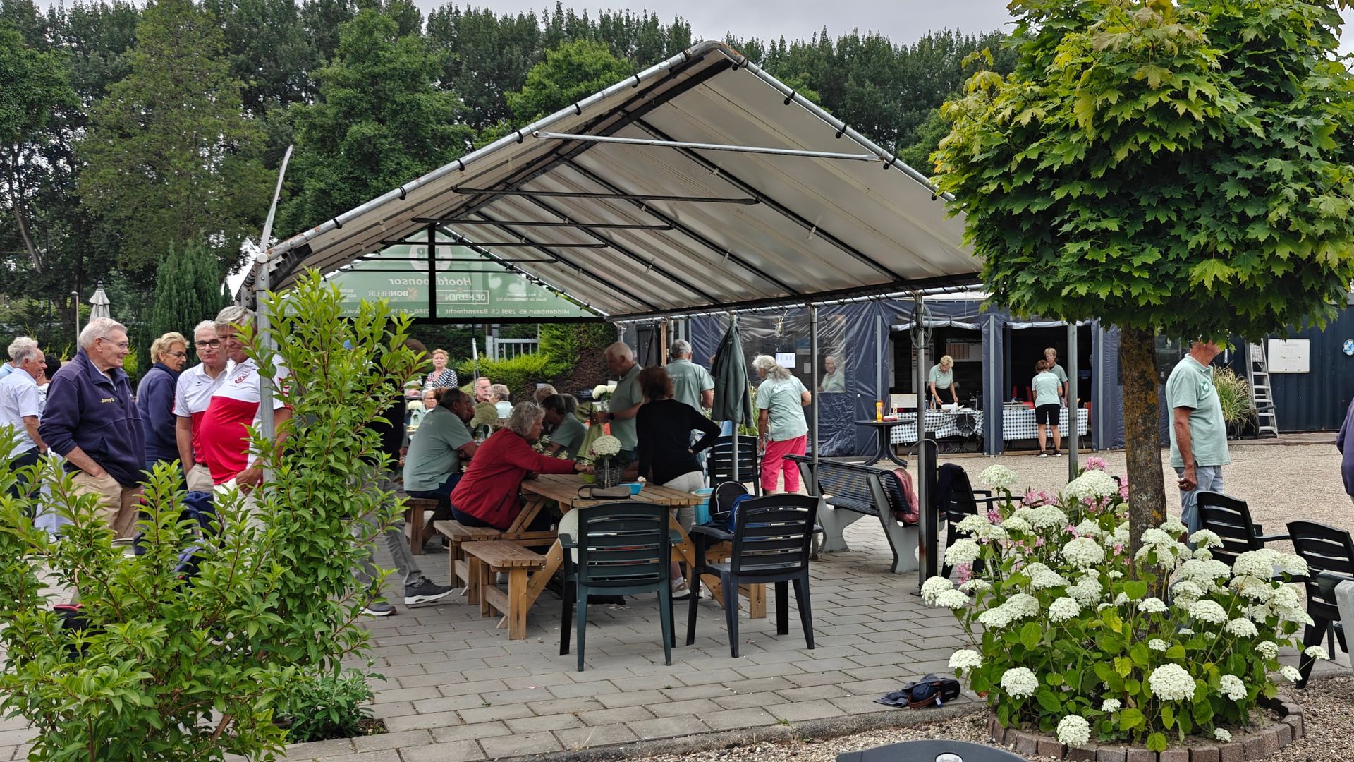 De sfeer zat er vanaf de start meteen goed in. De banen lagen er strak bij, het complex was vrolijk aangekleed met bloemen en de voorspelde regenbuien bleven gelukkig uit — het perfecte recept voor een geslaagde dag.