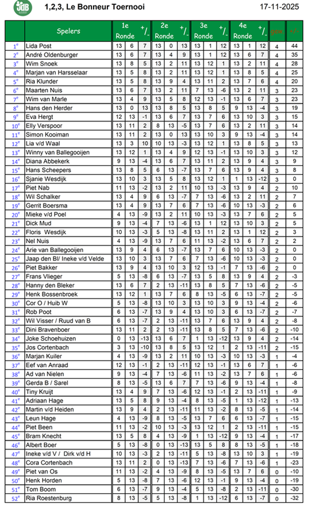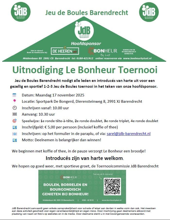 LE BONHEUR TOERNOOI BIJ JDB (MAANDAG 17-11-2025)