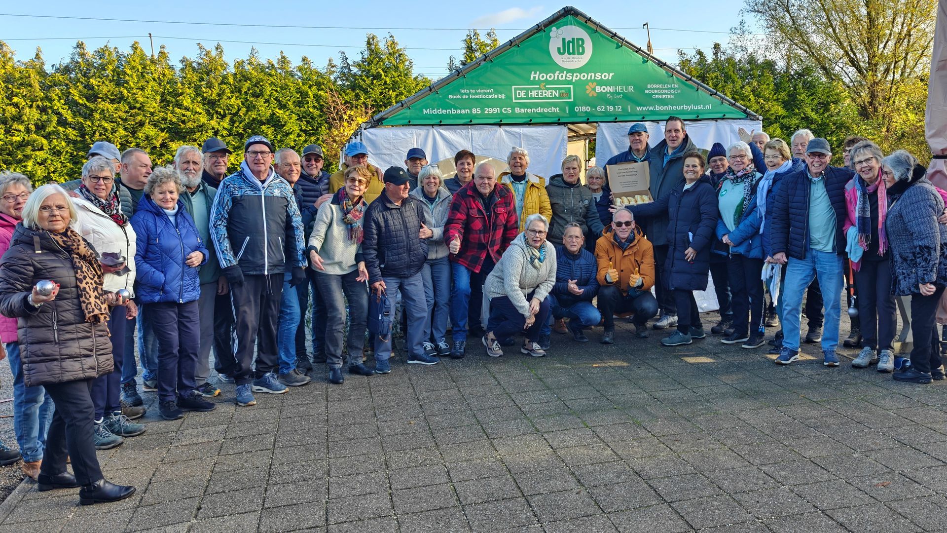 Afgelopen maandag vond bij JdB-Barendrecht het 1-2-3 Le Bonheur Toernooi plaats. Ondanks de koude en natte start van de dag waren er geen afzeggers: alle 52 enthousiaste boulers stonden vol goede moed klaar. Na een warm welkom met koffie en koek kon het toernooi van start. Gelukkig liet de zon zich, tussen de buien door, regelmatig zien. Er werd genoten van mooie partijen en sportieve strijd op de baan.