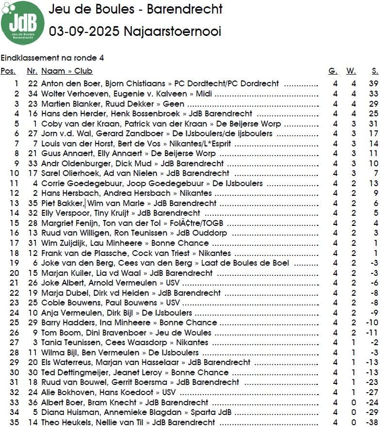 Op woensdag 3 september 2025 stond bij de JdB het Regio Najaarstoernooi (Doublet) op de agenda. Met een prachtige opkomst van 70 boulers uit de regio beloofde het een dag vol sportieve strijd en gezellig samenzijn te worden — en dat werd het ook!