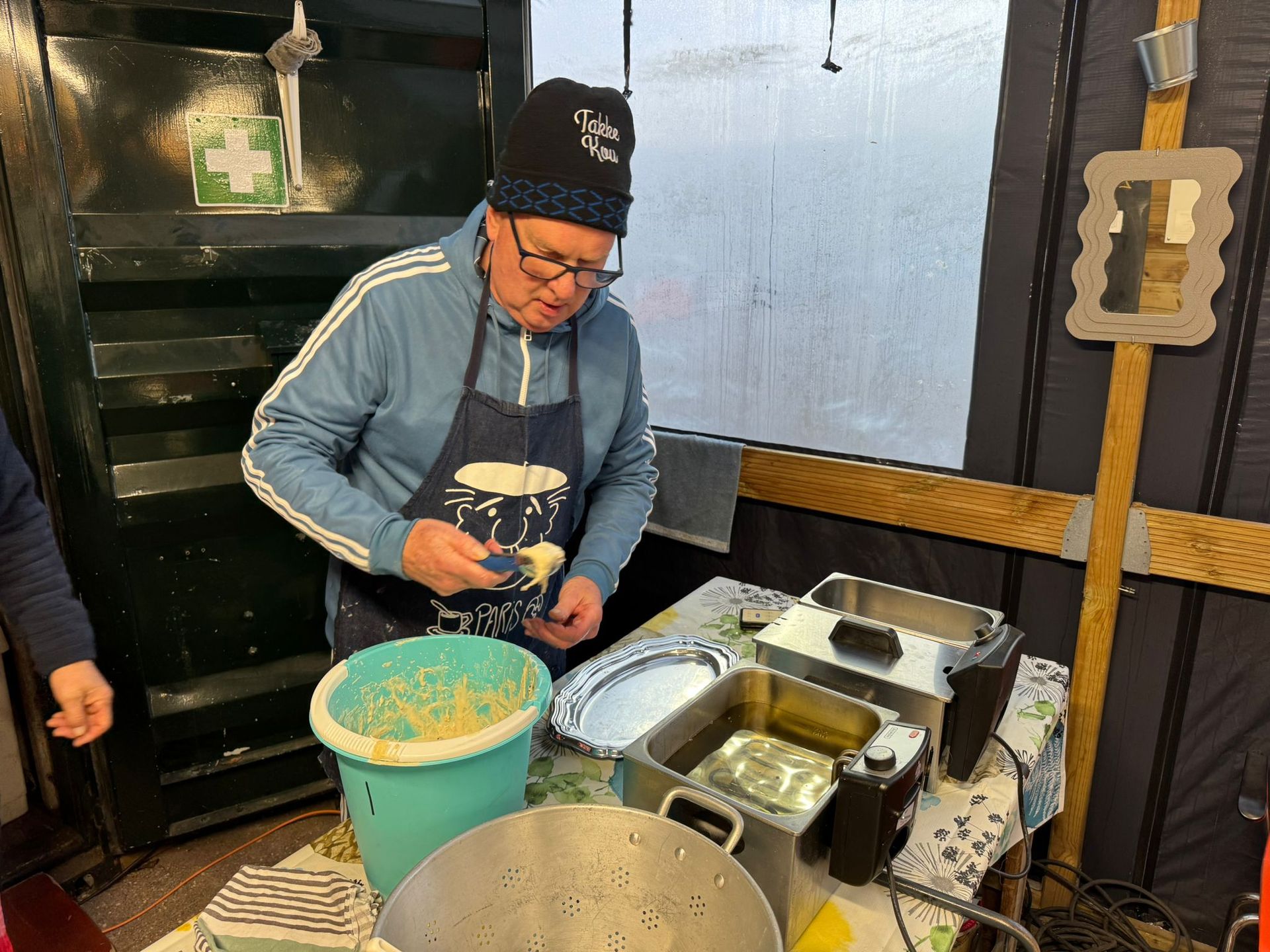 De deelnemers werden ontvangen met een warme oliebol en een kop koffie.