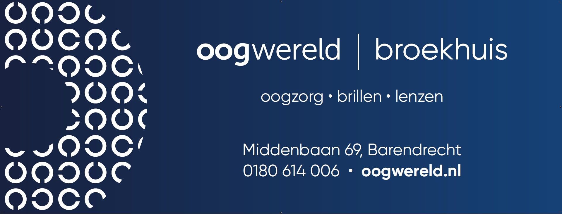 Wij mogen weer een nieuwe sponsor verwelkomen: Oogwereld Broekhuis! De vertrouwde opticien aan de Middenbaan 69 in Barendrecht is sinds kort trotse sponsor van onze vereniging. Hun spandoek hangt inmiddels goed zichtbaar op ons terrein.